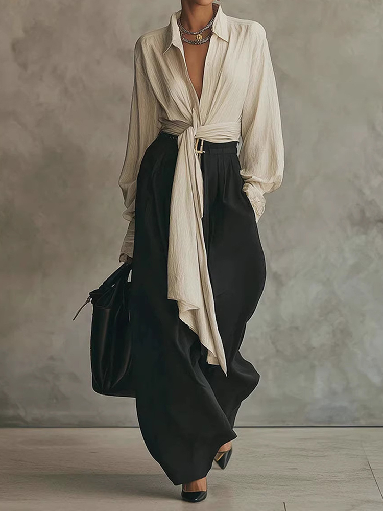 Women's Shirt And Drapey Wide-leg Pants Two-piece Set